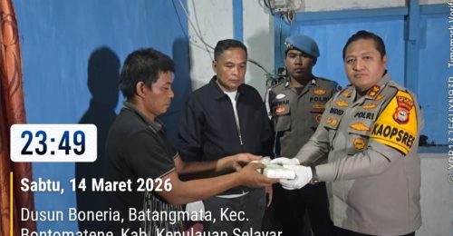 “Warga yang menemukan paket tersebut kemudian membawanya ke rumah dan sekitar pukul 21.00 Wita melaporkan kepada Bhabinkamtibmas Desa Barat Lambongan, Bripka Andi Nuryadin. Informasi tersebut kemudian diteruskan kepada Kapolsek Bontomate dan Satresnarkoba Polres Kepulauan Selayar,” ujar Kapolres.