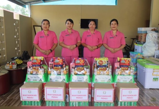 Dalam kegiatan tersebut, Wakil Ketua Bhayangkari Cabang Toraja Utara Ny. Alfrida Marthen Muni bersama para Pengurus Bhayangkari Cabang Toraja Utara memberikan bingkisan serta motivasi kepada petugas gabungan.
