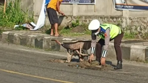 Terkadang, perubahan tidak selalu datang dari proyek besar. Kadang, ia hadir dari tangan-tangan yang peduli seperti seorang polisi yang memilih mendorong gerobak dan menutup lubang jalan demi keselamatan banyak orang.