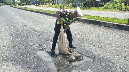 “Jalan berlubang di lokasi ini kerap menjadi penyebab kecelakaan lalu lintas. Menindaklanjuti laporan warga, kami segera melakukan penanganan cepat untuk meminimalisir risiko kecelakaan,” ujar IPDA Firman.