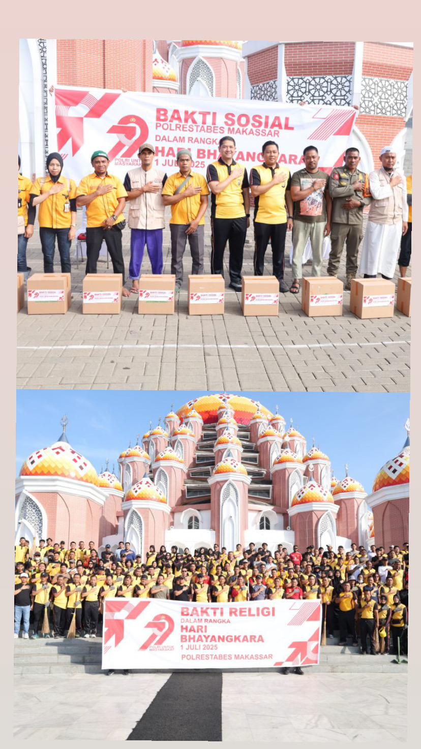 MAKASSAR – Dalam rangka menyambut Hari Bhayangkara ke-79 tahun 2025 serta sebagai wujud kepedulian terhadap lingkungan, Polrestabes Makassar menggelar kegiatan Bakti Religi bersih-bersih tempat ibadah pada Jumat, (13/06/2025) di Masjid Kubah 99 Kawasan CPI jalan Metro Tanjung Bunga Kota Makassar.