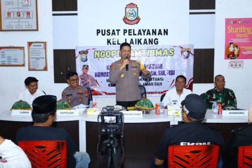 MAKASSAR – Kapolrestabes Makassar, Kombes Pol Arya Perdana, S.H., S.I.K., M.Si., melaksanakan kegiatan Ngopi Kamtibmas bersama warga Kelurahan Laikang, Kecamatan Biringkanaya, Rabu malam (27/8/2025).