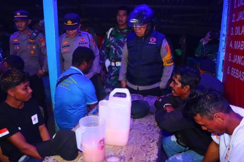 Dalam operasi tersebut, petugas berhasil mengamankan serta membubarkan sekelompok masyarakat yang pesta minuman keras dan beraktifitas hingga larut malam.