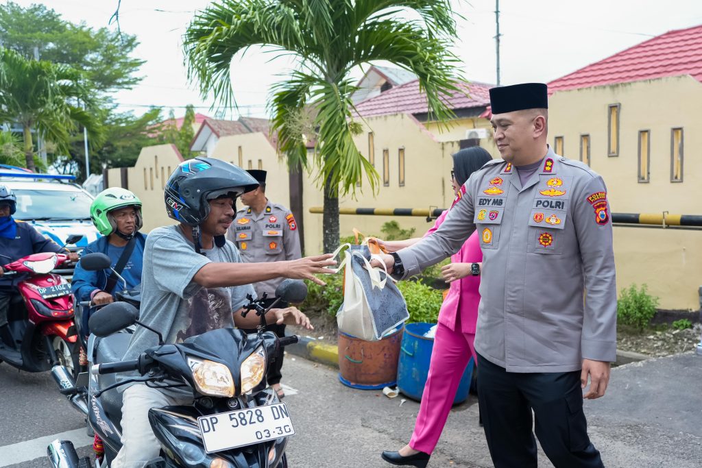 Pinrang – Dalam rangka meningkatkan kepedulian dan mempererat kedekatan dengan masyarakat di bulan suci Ramadan, Kapolres Pinrang AKBP Edy Sabhara Mangga Barani, S.I.K didampingi Ketua Bhayangkari Cabang Pinrang Ny. Hadijah Edy Mangga Barani melaksanakan kegiatan pembagian takjil kepada para pengguna jalan di depan Mapolres Pinrang, Rabu (11/03/2026) sore.