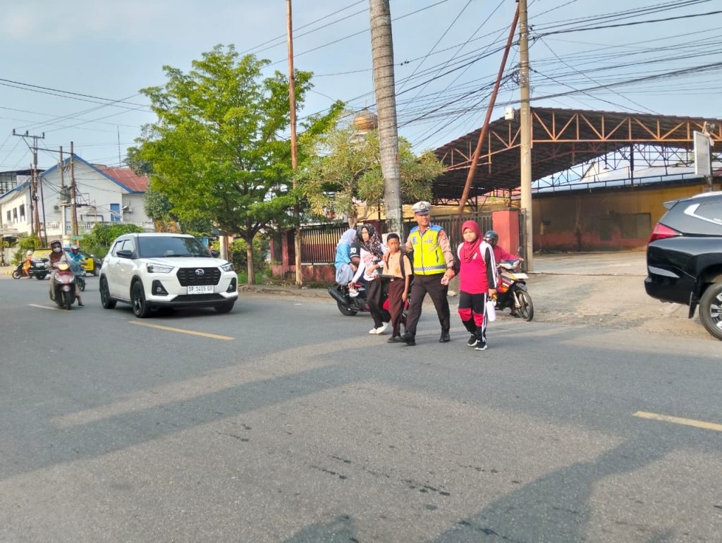 Kegiatan tersebut difokuskan pada pengaturan arus kendaraan di jam sibuk, khususnya saat masyarakat memulai aktivitas pagi hari.