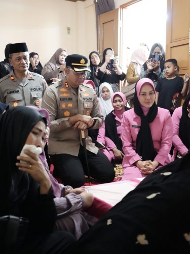 GOWA – Kapolres Gowa AKBP Muhammad Aldy Sulaiman, S.I.K., M.Si., didampingi Ketua Bhayangkari Cabang Gowa Ny. Dessy Aldy bersama pengurus, melayat ke rumah duka almarhum AIPTU Makmur, personel Bhabinkamtibmas Polsek Tompobulu Polres Gowa, Senin (11/8/2025).