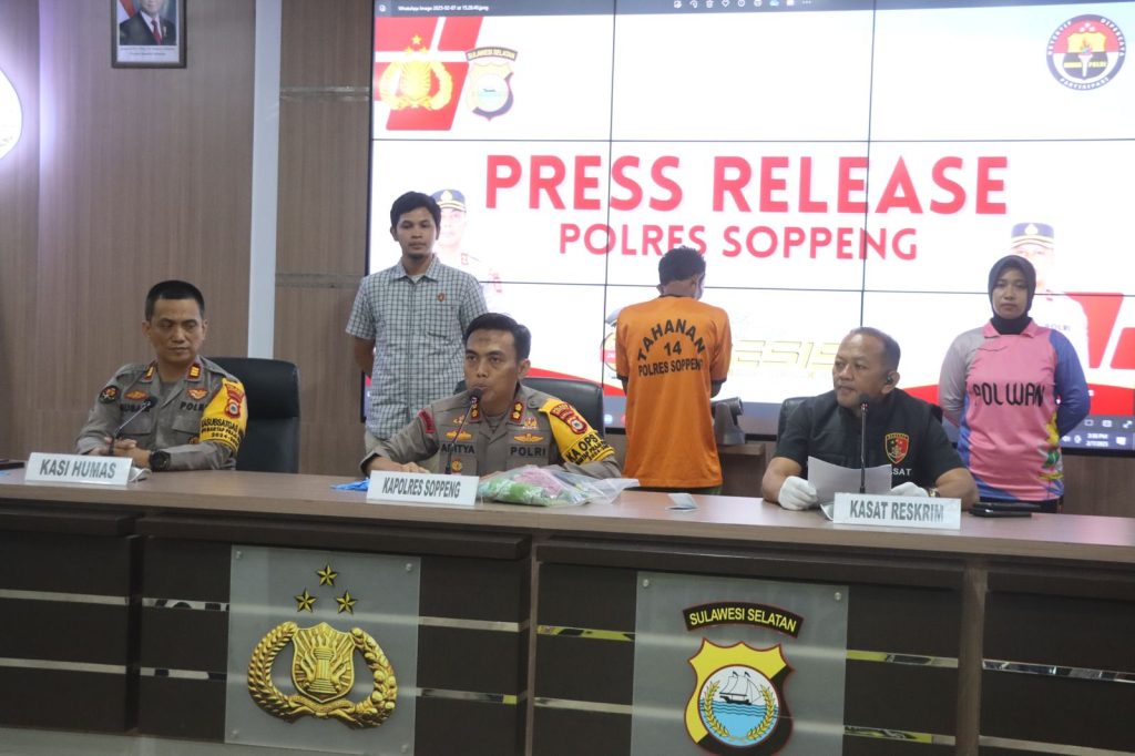 Kapolres dalam press release menyampaikan, Pelaku berinisial A (45) warga Desa Laringgi, memulai aksi bejatnya pada akhir bulan Maret 2024 di rumah pelaku, Laringgi, Desa Laringgi, Kec. Marioriawa, Kab. Soppeng. Dan terungkap saat adanya korban AA (17) yang sudah tidak tahan lagi dengan pelaku yang sudah berkali-kali mencabuli dan menyetubuhi korban, sehingga korban meminta bantuan kepada salah satu warga untuk mendampinginya melaporkan adanya kejadian tersebut.