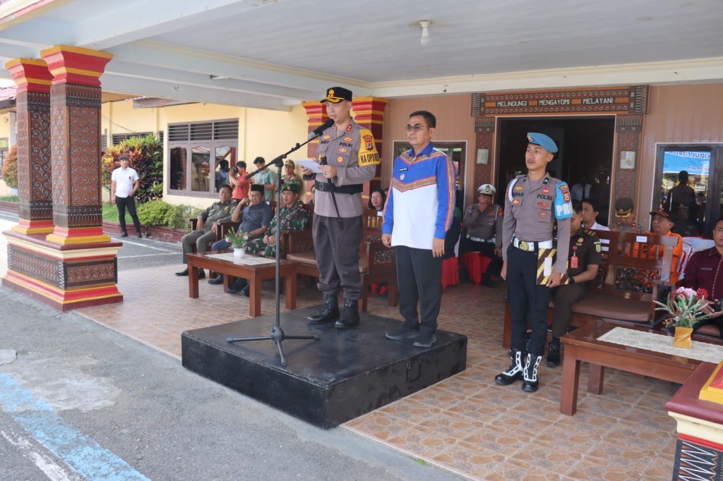 Kapolres Tana Toraja AKBP Budi Hermawan membacakan amanat Kapolri Jenderal Polisi Drs. Listyo Sigit Prabowo, M.Si, menyatakan bentuk komitmen untuk memastikan kesiapan personil dan sarana prasarana (sarpras) serta memperkuat sinergitas dengan stakeholder terkait sehingga operasi Ketupat 2026 dalam rangka pengamanan mudik serta perayaan hari raya Idul Fitri 1447 H dapat berjalan aman, tertib dan lancar.