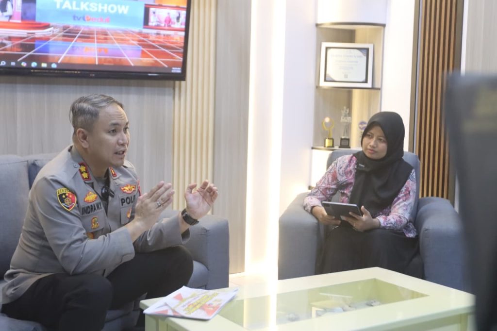 PAREPARE — Kapolres Parepare AKBP Indra Waspada Yuda memaparkan strategi kepolisian dalam menghadirkan rasa aman bagi masyarakat saat menjadi narasumber dalam Live Talk Show di Studio TV Peduli Parepare, Jalan Jenderal Sudirman, Kelurahan Cappa Galung, Kecamatan Bacukiki Barat, Senin (27/4/2026) pukul 10.15 Wita.