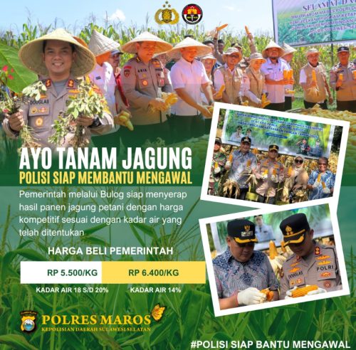 MAROS – Polres Maros mendorong para petani jagung di wilayah Kabupaten Maros untuk menjual hasil panen mereka ke Perum Bulog.