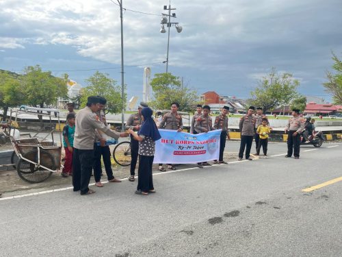 KEP. SELAYAR – Personel Satuan Sampta Polres Kepulauan Selayar melaksanakan kegiatan berbagi takjil kepada masyarakat dan pengguna jalan dalam rangka memperingati Hari Ulang Tahun (HUT) ke-74 Korps Sabhara Polri sekaligus memeriahkan bulan suci Ramadan 1447 H. Kegiatan sosial tersebut dilaksanakan di depan Mapolres, Rabu (11/3/2026) sore.