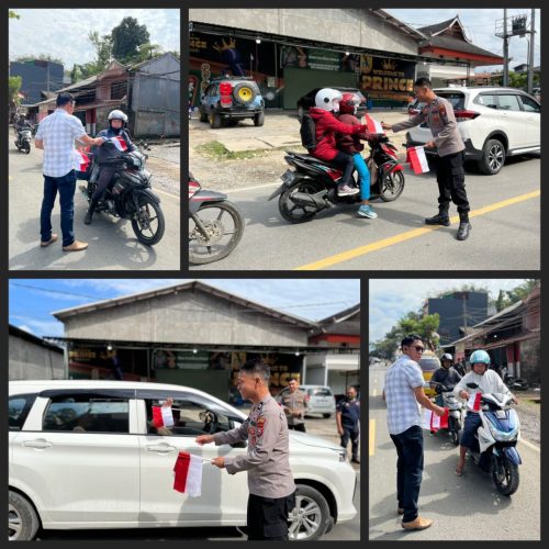 Dipimpin Kasat Intelkam IPTU Desi Salinding mewakili Kapolres Toraja Utara AKBP Stephanus Luckyto A.W, S.I.K., S.H., M.Si, kegiatan digelar dengan menyasar para pengguna jalan sembari membagikan Bendera Merah Putih secara gratis.