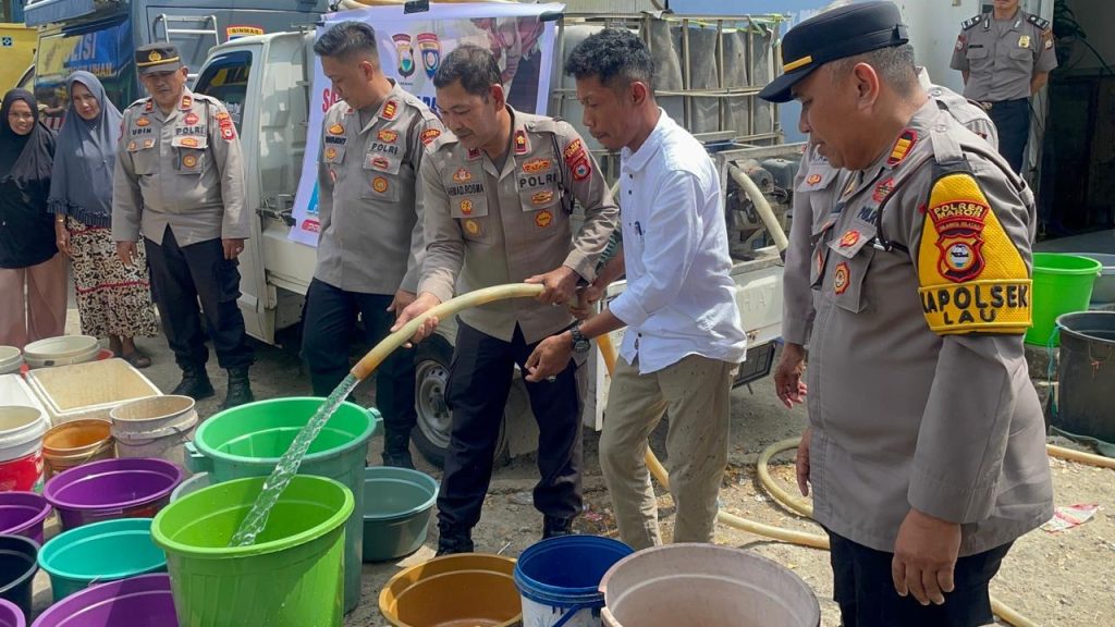 “Kegiatan ini merupakan implementasi dari program Polisi Penolong. Kami menerima laporan bahwa warga mulai kesulitan air bersih, sehingga kami kerahkan unit tangki untuk mendistribusikan air secara gratis. Kami pastikan bantuan ini akan terus berlanjut hingga situasi kembali normal.” Kata Wakapolres Kompol Ahmad Rosma S.H.