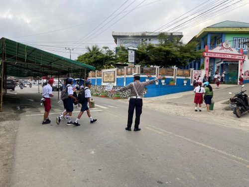 Personel Sat Lantas terlihat aktif mengatur arus lalu lintas serta sigap membantu para pelajar menyeberang jalan di titik-titik rawan guna menciptakan situasi yang aman, tertib, dan nyaman bagi seluruh pengguna jalan.