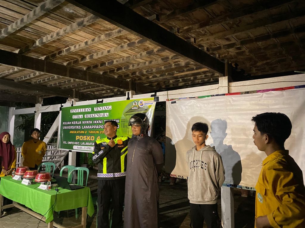 Adapun materi sosialisasi disampaikan oleh Kanit Kamsel AIPTU H. Mahmudin Arsyad, didampingi KAURMINTU AIPDA Armin Arfah, SH serta BAURMINTU BRIPDA Anugrah Saputra, SH. Kegiatan ini juga terlaksana berkat kerja sama antara Satlantas Polres Soppeng dengan mahasiswa Universitas Lamappapoleonro.