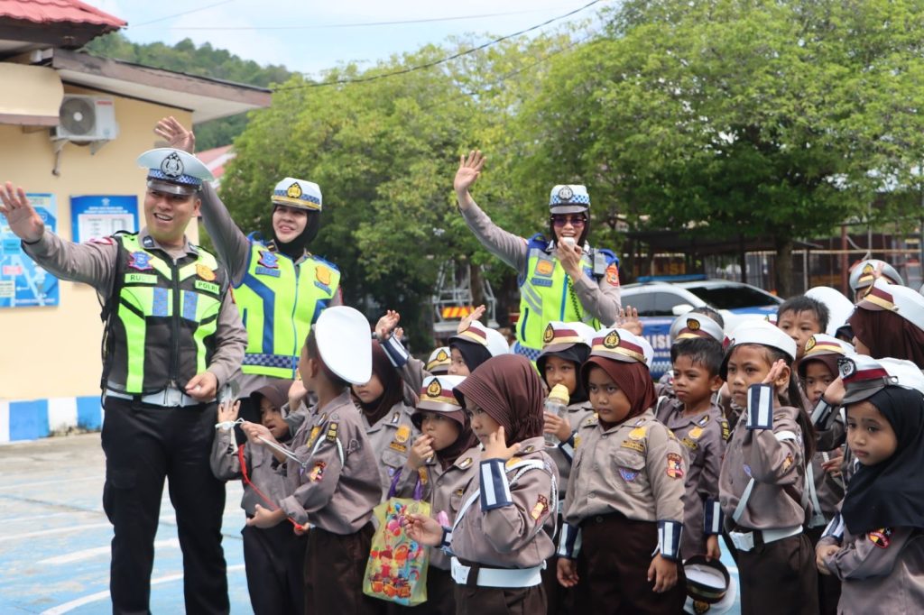 Luwu — Dalam upaya membangun kesadaran tertib berlalu lintas sejak usia dini, Satuan Lalu Lintas Polres Luwu menggelar kegiatan Polisi Sahabat Anak (Polsanak) dengan menghadirkan murid Taman Kanak-Kanak Negeri Pertiwi Belopa dalam kunjungan edukatif ke Mapolres Luwu, Kamis (16/4/2026).