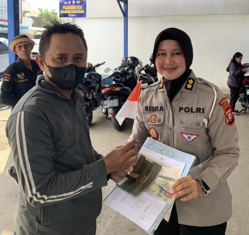 “Sejumlah masyarakat yang melakukan Pengurusan dan Perpanjangan Pajak Kendaraan dibagikan bendera merah putih sekaligus benderanya di pasang di mobil dan motornya”, Ujar Kasubdit. Senin (11/08/2025).