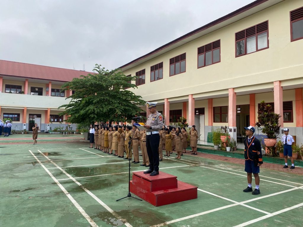 Dalam upaya menciptakan generasi muda yang sadar hukum dan tertib berlalu lintas, Satuan Lalu Lintas (Sat Lantas) Polres Toraja Utara Polda Sulsel melaksanakan kegiatan edukasi bertajuk “Police Goes to School (Polantas Menyapa)” di SMPN 1 Rantepao, Senin (27/04/2026) pagi.