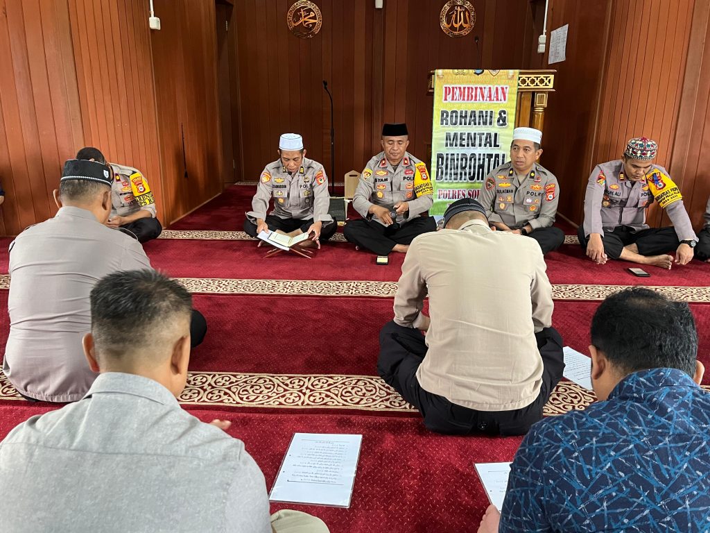 Polres Soppeng melaksanakan kegiatan Bimbingan Rohani dan Mental (Binrohtal) sebagai bentuk pembinaan rohani dan mental bagi personil Polres Soppeng, bertempat di Masjid Al-Aqso 2003 Polres Soppeng, Jl. La Tenribali, Kel.Lalabata Rilau, Kec.Lalabata. Selasa, 11 Februari 2025.