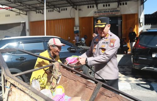 Tak hanya itu, Kapolres juga memberikan dua karung beras kepada seorang pengendara sepeda motor dan seorang lansia penarik gerobak besi tua.
